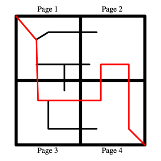 Let’s say my maze was 4 pages long (in a grid 2×2). Here is how I would plan out the maze…